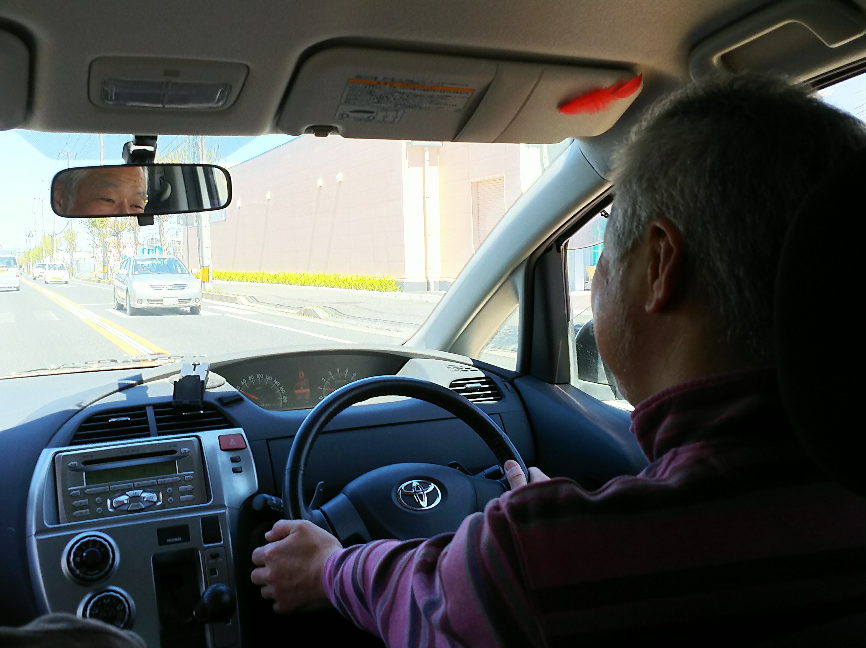 ハンドルを握る川俣委員長。元JRの運転士だけに、運転には厳しい。