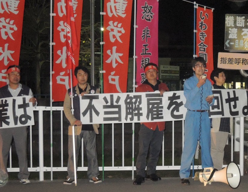 K君はいわき合同ユニオンに加入し、解雇撤回闘争が始まりました。1度目の団体交渉は解雇日直前の10月28日に行われましたが、「会社の代理人」を名乗る弁護士が「解雇理由はK君のすべてだ」という許し難い侮辱もするなど、K君及びいわき合同ユニオンに対し不誠実極まりない態度を示し、そのままK君はわずか7カ月で解雇されてしまいました。その後の2度目の団交においても「与えられた業務ができなかった」とK君の上司や人事担当者が主張するのみで、解雇の具体的な理由は示されませんでした。